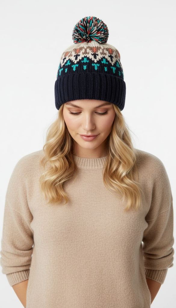 COUTHIE AZTEC DESIGN NAVY POM POM HAT (POM 35)